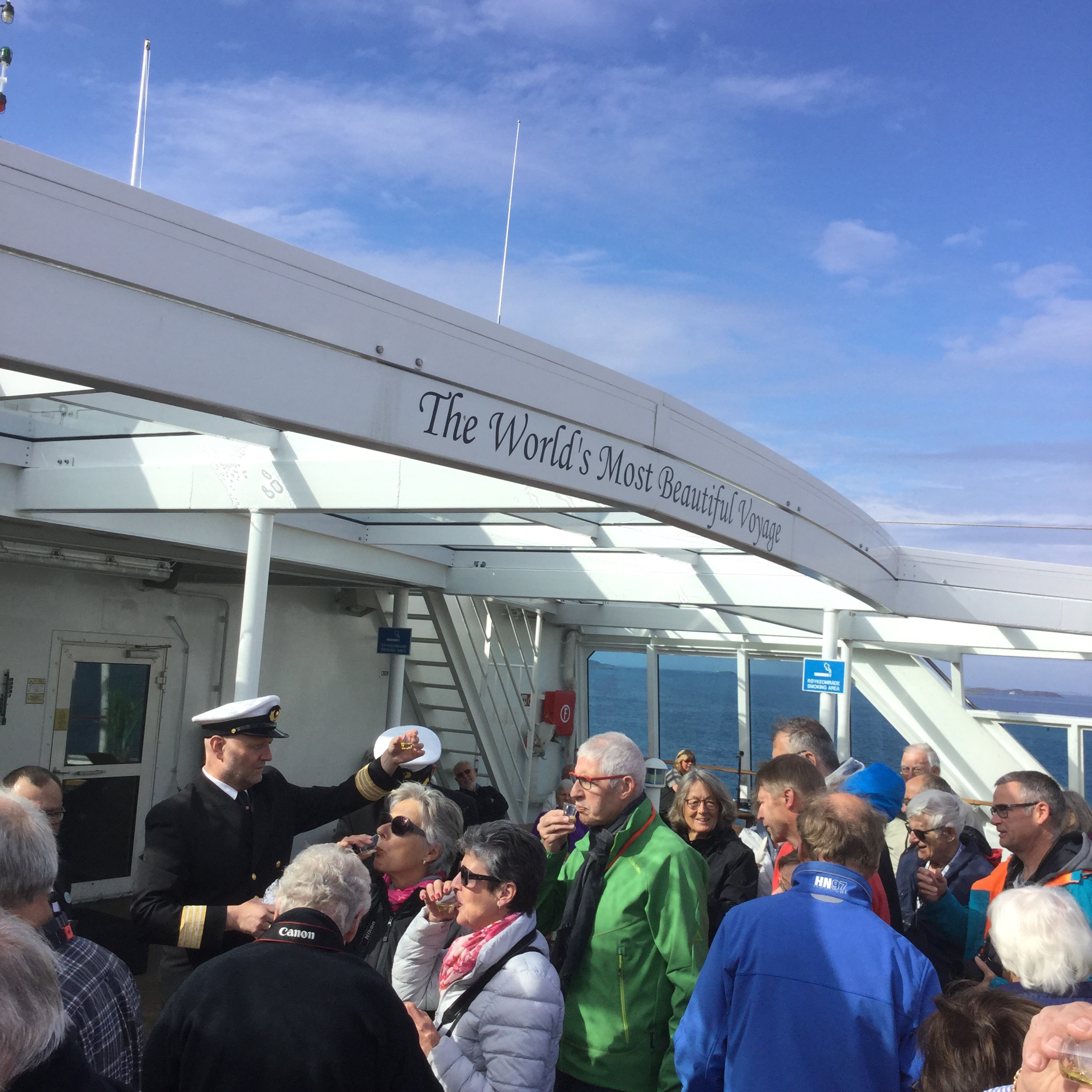 The Captain held a ceremony on deck – he was handing out glasses of cod liver oil for free & selling glasses of champagne for $13. Not even a glass of champers could entice me to drink cod liver oil. I remember it too well from my childhood. That and Clements Tonic. David gave it a miss too