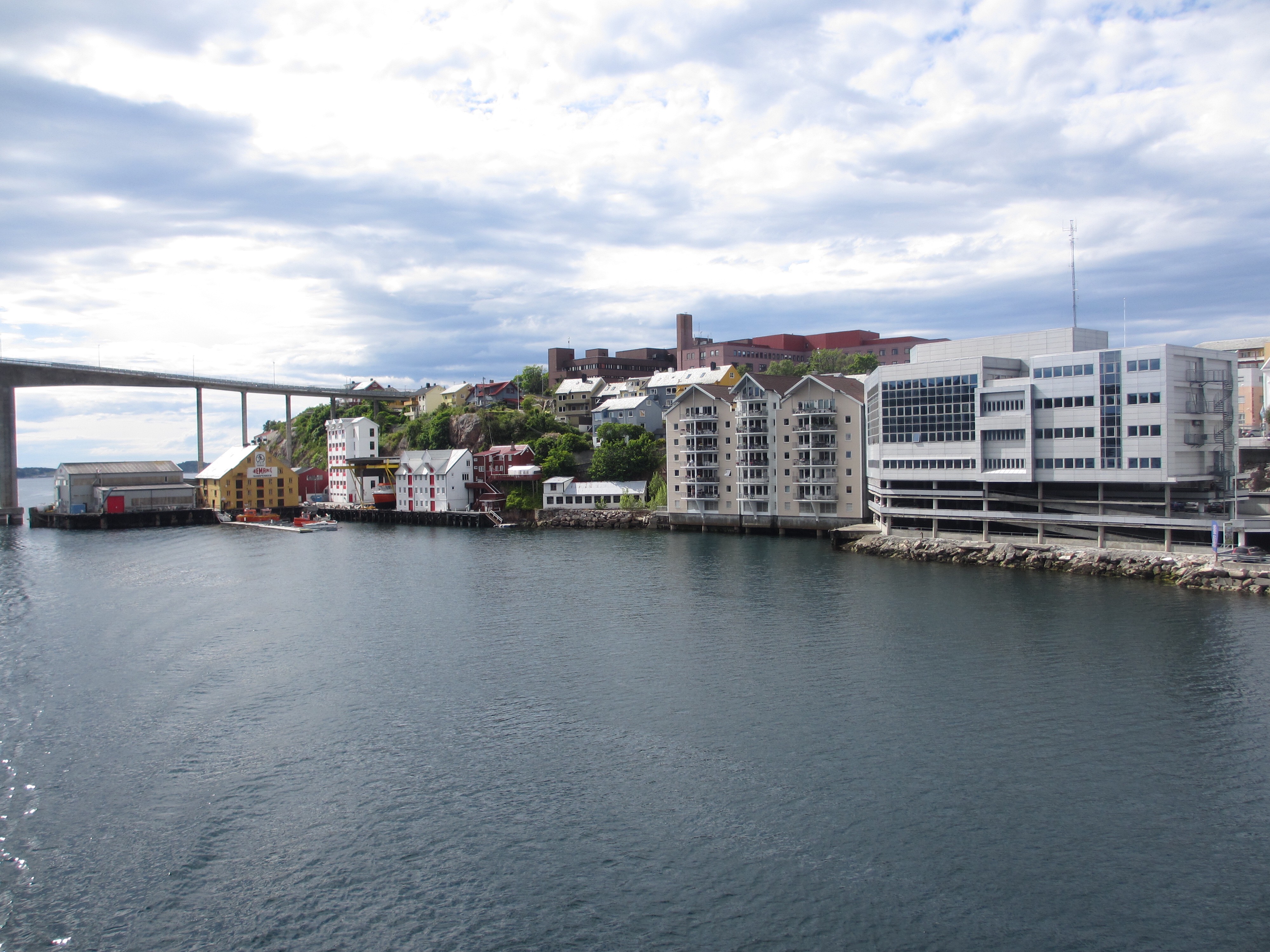 This afternoon we stopped briefly in Kristiansund, a pretty place. It was wiped out by bombing in WWII so the houses all date from the 1950s on.