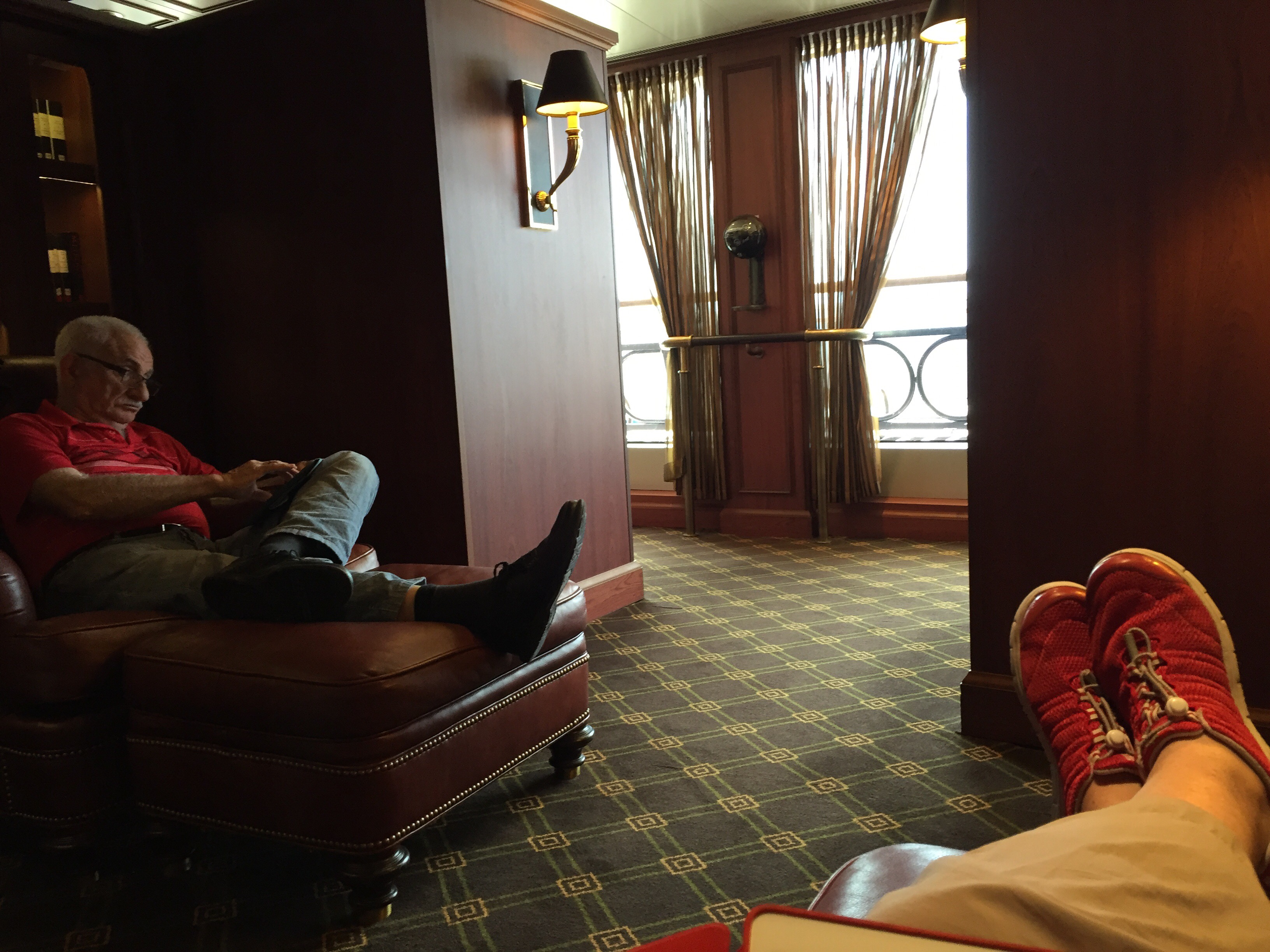 We really like this ship – we prefer it to the Queen Elizabeth. We love that we can eat at a time that suits us in The Grand Dining Room. We’ve had a lovely breakfast there every day. David has been enjoying grilled lamb chops. They are much more generous with soft drinks, coffees, bottled water, the speciality restaurants all being included. The staff are very friendly & are always cracking jokes. It’s great. We’re loving it & certainly enjoying the luxury!
