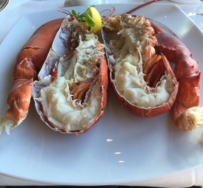 breakfast in the Grand Dining Room on the Marina & he was very impressed with his whole lobster in the Polo Grill restaurant on Marina. For me it was undoubtedly the sea bass I had in Red Ginger – it had been marinated in palm sugar & soy sauce for 24 hours & wrapped in Banana leaves for cooking. However, the Alaskan King Crab we had on Trollfjord & in Bergen & the whole lobster were excellent too.