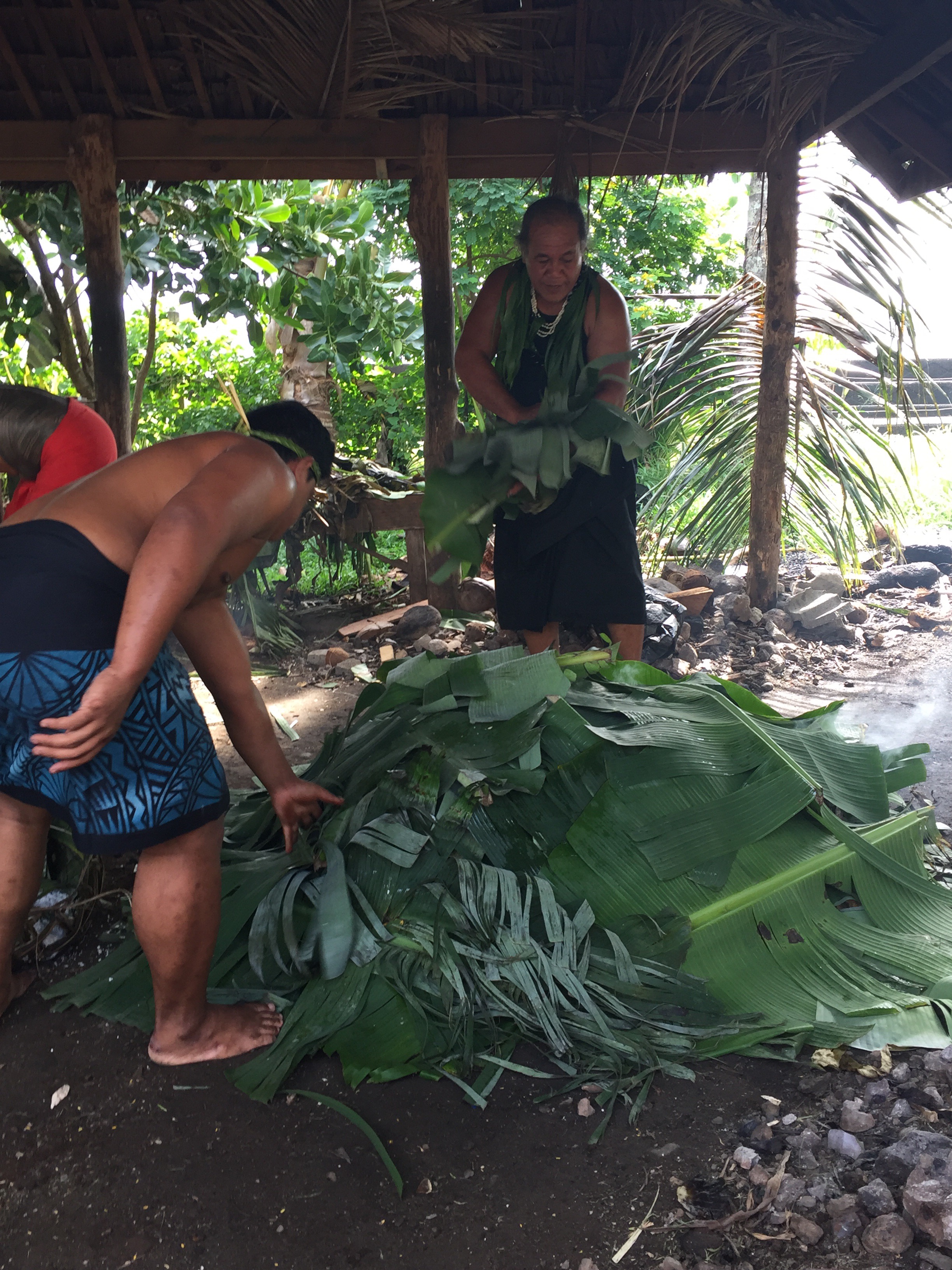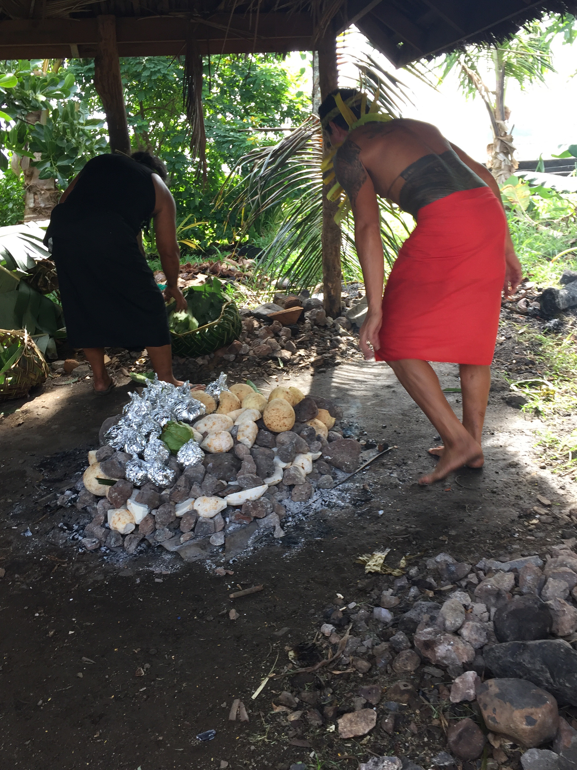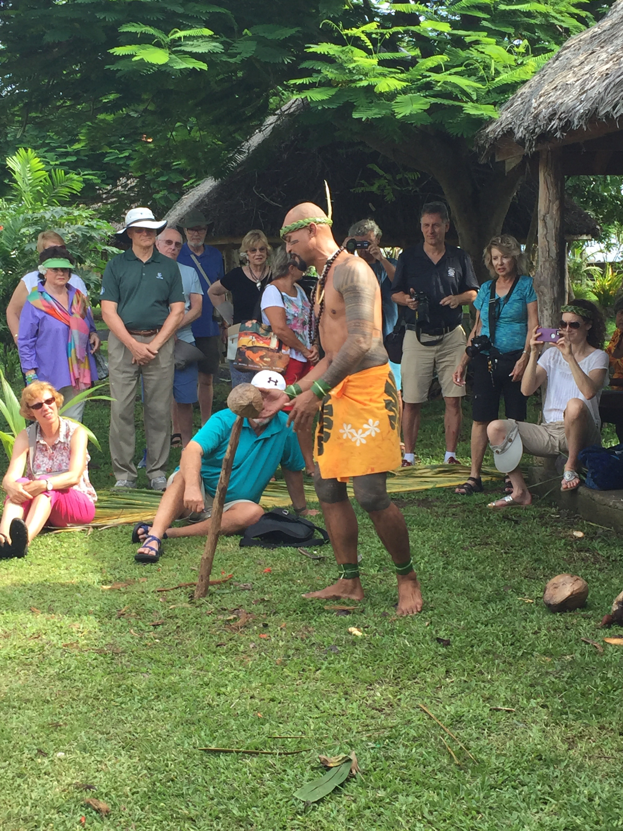 Then we caught a shuttle bus into a Samoan Cultural Village where we were shown how the men prepare the fire and the coals, make coconut cream, prepare the food & cook it which was all very interesting: