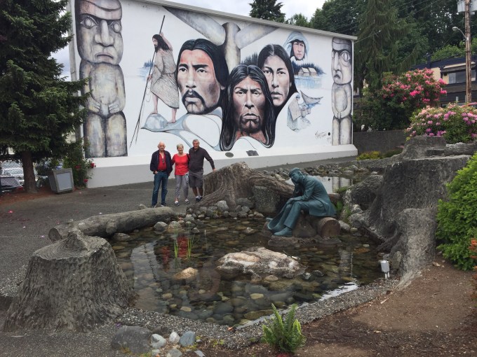 Yesterday Ben & Kay took us over the Malahat & into Chemainus, an historic mining town where the mill still employs 200 people. It reminded us of Sheffield in Tasmania as they have murals on the buildings telling the early history of the town. I seem to keep repeating myself about the beautiful mountains covered with conifers & the magnificent waterways but we drove through them again yesterday.