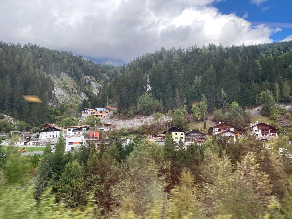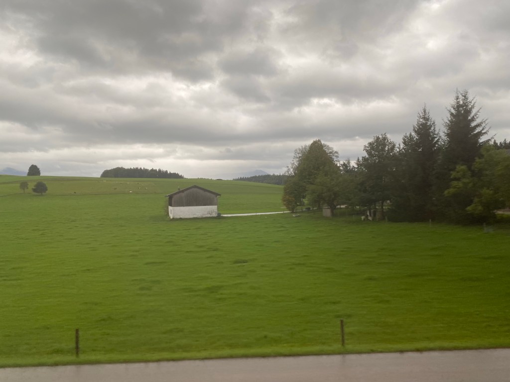 It didn’t help that it was pouring with rain the whole time. Our train ride from Munich to Salzburg (about 90 minutes) was fine, we passed through beautiful green countryside and the grey clouds were covering the mountains.