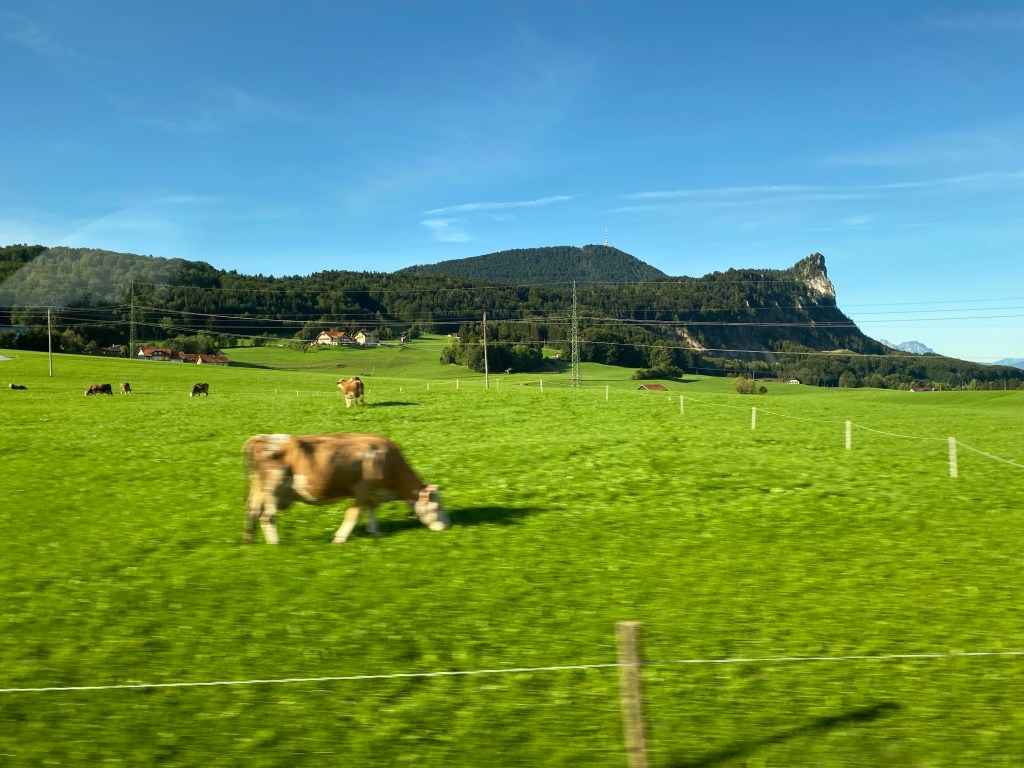 The move was a debacle. We all had to get our luggage down and then Sara organised us into taxis with our luggage. It was Chaos! Why couldn’t a bus pick us up and take us to the station? Then we had to get all of us and our luggage into a carriage. More Chaos! There wasn’t enough luggage storage. The others helped us a lot so we were ok. After a couple of hours, we arrived at Sargans where Sara had managed to organise a vehicle to take our luggage. There was no lift so we had to push our luggage up two steep slopes to the vehicle but it was such a relief to be rid of it. We had to change trains again at Chur.