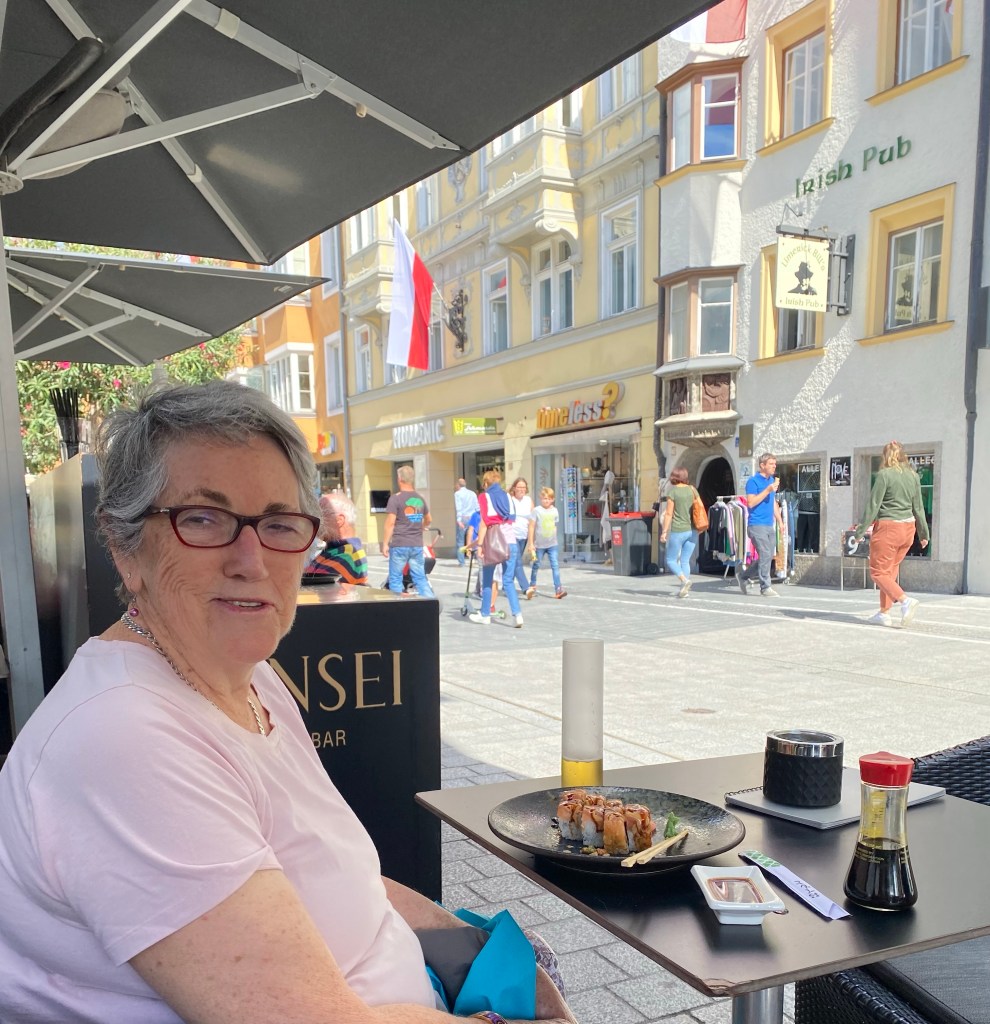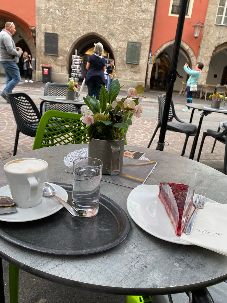 Coffee and cake in the old town of Innsbruck.Very tasty sushi for lunchAmazing old steps in the Art Gallery I wandered into – FerdinandeumWill it be fine up there? I hope so.