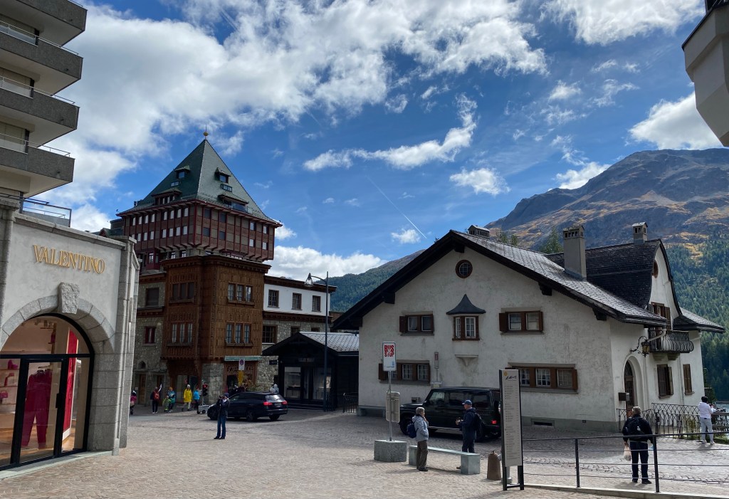 Before arriving in St Moritz, we travelled through very steep mountains. It was amazing and is a UNESCO World Heritage Railway. My photos out of the train window don’t seem to do it justice. When we arrived here, we walked across the road, through a building onto three long steep elevators which brought us up to the town and our Hotel Schweizerhof which is lovely. We had time to unpack and shower before a delicious dinner in the hotel. We’re here for three nights. It’s a bit cool here: it’s 3.8 degrees now at 6:30am.