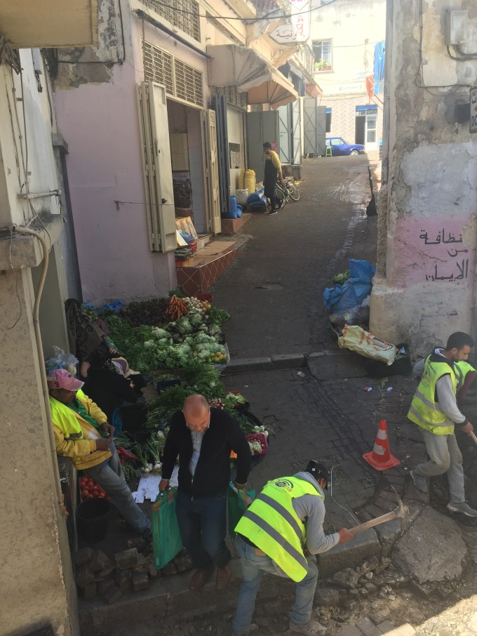 We wandered around for a while, still searching for our hit of caffeine and then walked down the steep hill to the waterfront where we found many cafés and were able to get our coffee. It was very strong, delicious and cost €1 each. The currency here is the dirham which is worth US$0.10.