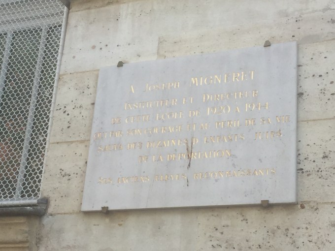 During the occupation this was a Jewish school but the students were not taught any traditional Jewish learnings. One of the teachers was Joseph Migneret who assisted 252 of his pupils to escape from the Nazis and this plaque honours him. I think that number is right but I could be wrong.