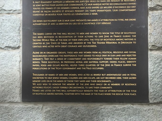 The street below had its name changed to honour non Jewish French citizens who assisted Jews to escape the Holocaust and did this without any prospect of payment. As you can see there are many names on the wall of the street which honours them. It is the Street of The Just.
