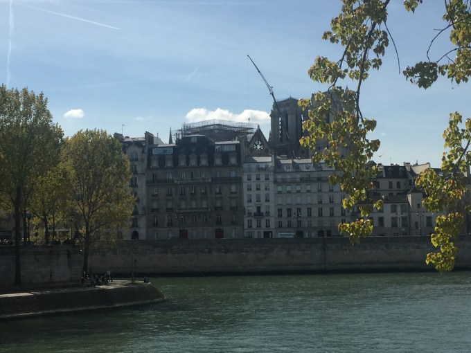 Emmanuel had planned to finish the tour at Notre Dame but all the streets are closed off. I imagine this is to allow investigation of the fire and to begin the clean up and rescue of whatever can be saved. David and I went as close as we could to get the following photo